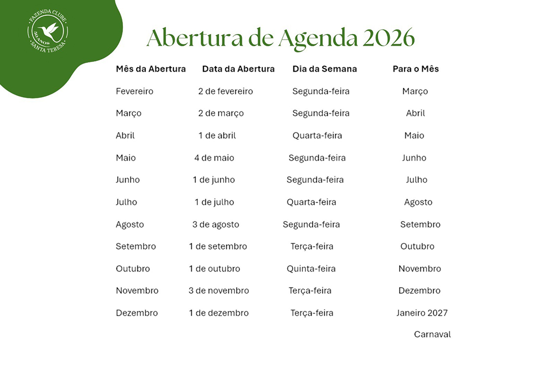 Calendário de abertura de agenda de reservas